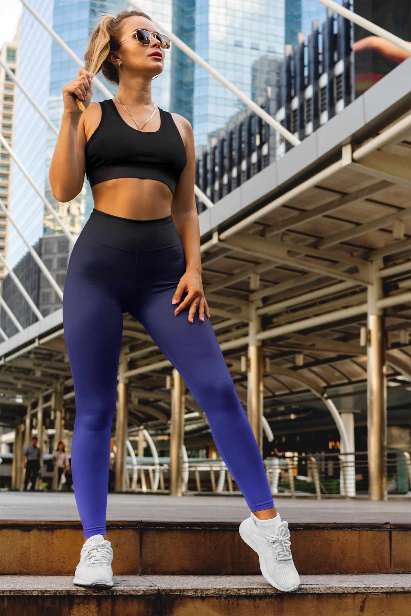 Legging dégradé bleu foncé super doux, extensible et confortable.
